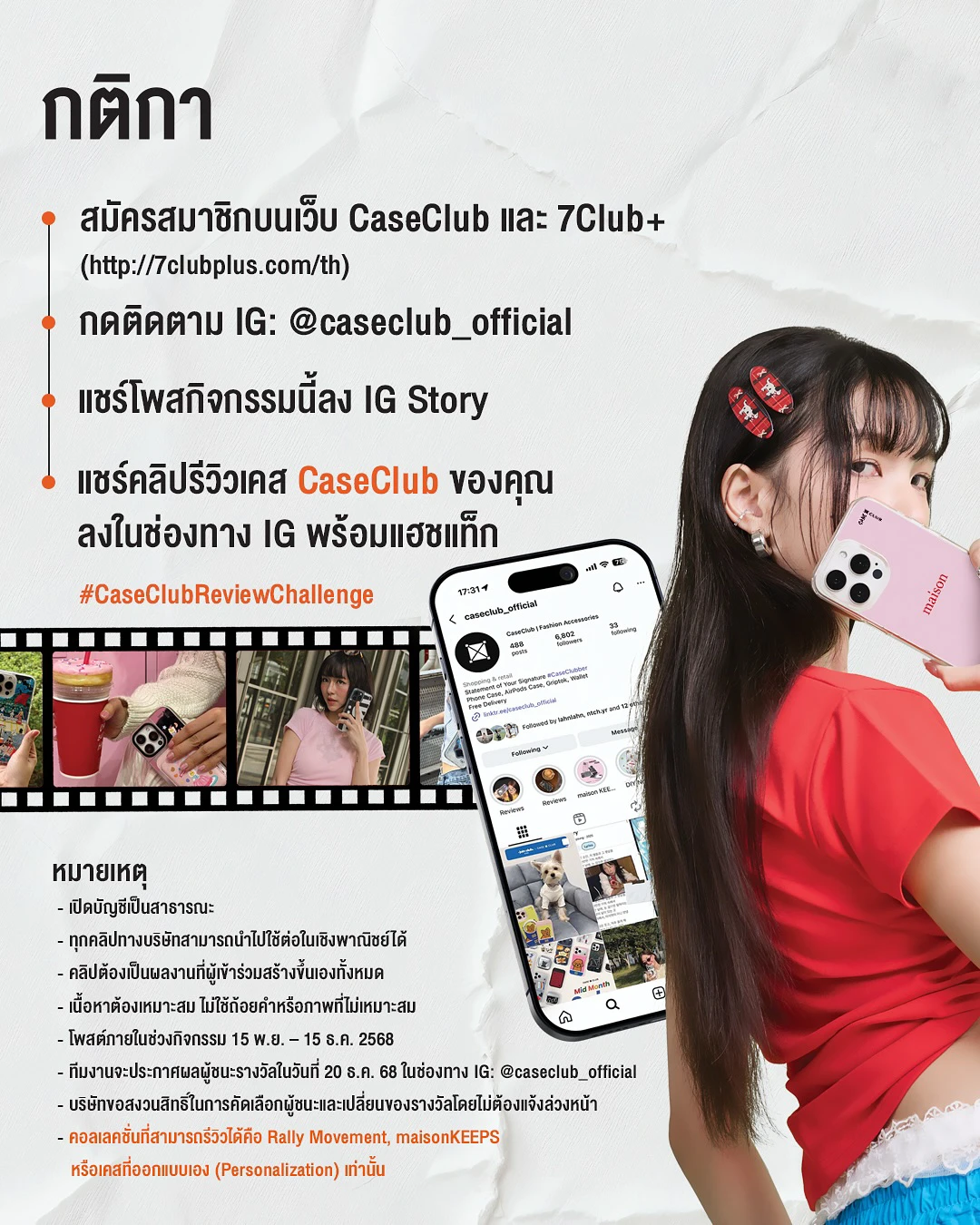 - ใส่แฮชแท็ก #CaseClubReviewChallenge