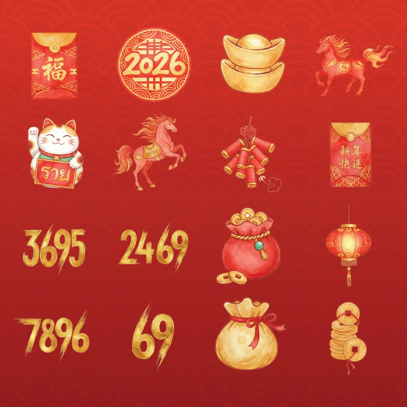 สติ๊กเกอร์ทุกลาย ออกแบบโดยทีม CaseClub แรงบันดาลใจจากไอเท็มมงคลของจีน ที่ให้คุณเลือกได้เองว่าจะเสริมดวงด้านไหน โดยทุกดีไซน์ออกแบบมาให้มีความน่ารักเเละเป็นเคสมงคล ทันสมัย เหมาะกับเป็น Daily Lucky Item ของคนยุค 2026