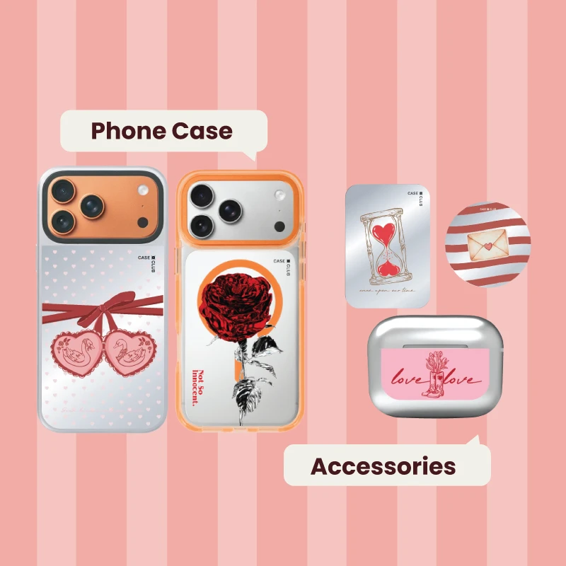 ดีไซน์โรแมนติกพร้อมด้วยริบบิ้น หัวใจ และกุหลาบ ในโทนสีชมพูแดงที่บาลานซ์ ไม่เลี่ยนเกินไป เช่น Double Heart Cherry Ribbon ที่ให้ฟีลวาเลนไทน์ละมุน และ Metallic Rose เป็นที่โทนลึกขึ้นคล้ายเคสสีแดงเบอร์กันดี (Red Wine Case) ให้ความรู้สึกหรูและคลาสสิก สามารถใช้ได้ทุกปีในสไตล์ Pink and Red Aesthetic โดยความพิเศษของโทนนี้คือ “หวานแบบโต” ถือแล้วดูมีดีเทล แต่ไม่เด็กเกินไป อีกทั้งยังมีลาย Heart Hourglass, Love Scribble และ Love Letter เหมาะกับคนที่อยากได้ลุคโรแมนติกแบบมีระดับ