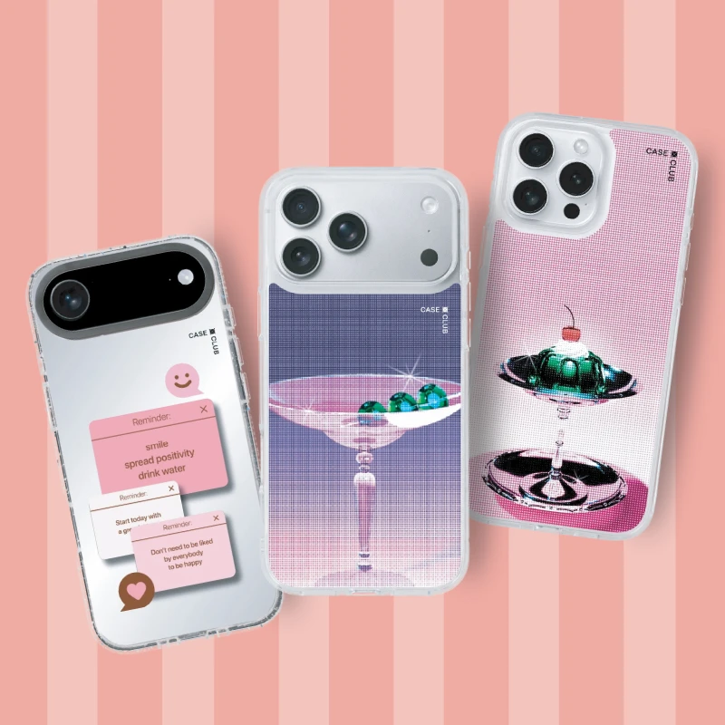 ลายกราฟิกและไลฟ์สไตล์ที่ดูโมเดิร์นขึ้น เช่น Text Pop Up, Halftone Cocktail Glass, Halftone Jelly หรือกลุ่มลายเครื่องดื่มโทนชมพูม่วง ที่ให้ฟีล Y2K เบา ๆ เพิ่มความครีเอทีฟและทำให้เคสมือถือโทนสีชมพูแดง ดูโดดเด่นมากขึ้น นี่คือโทนที่ทำให้เคสกลายเป็น Statement Piece ไม่ใช่แค่ของป้องกันมือถือ แต่ยังสะท้อนตัวตนได้ชัดเจนมากยิ่งขึ้น